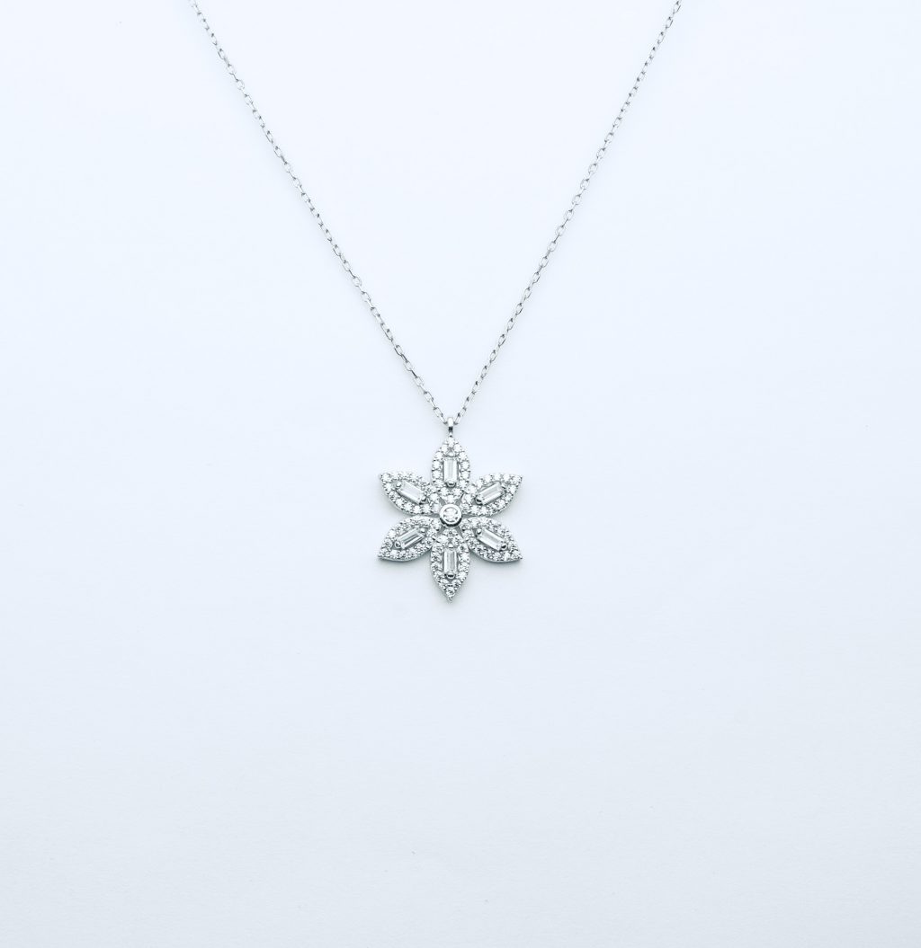 Home / Dam Sterling silver, Halsband, Silver Dam Halsband, Silver smycken / Äkta silver Halsband med snöflingehänge