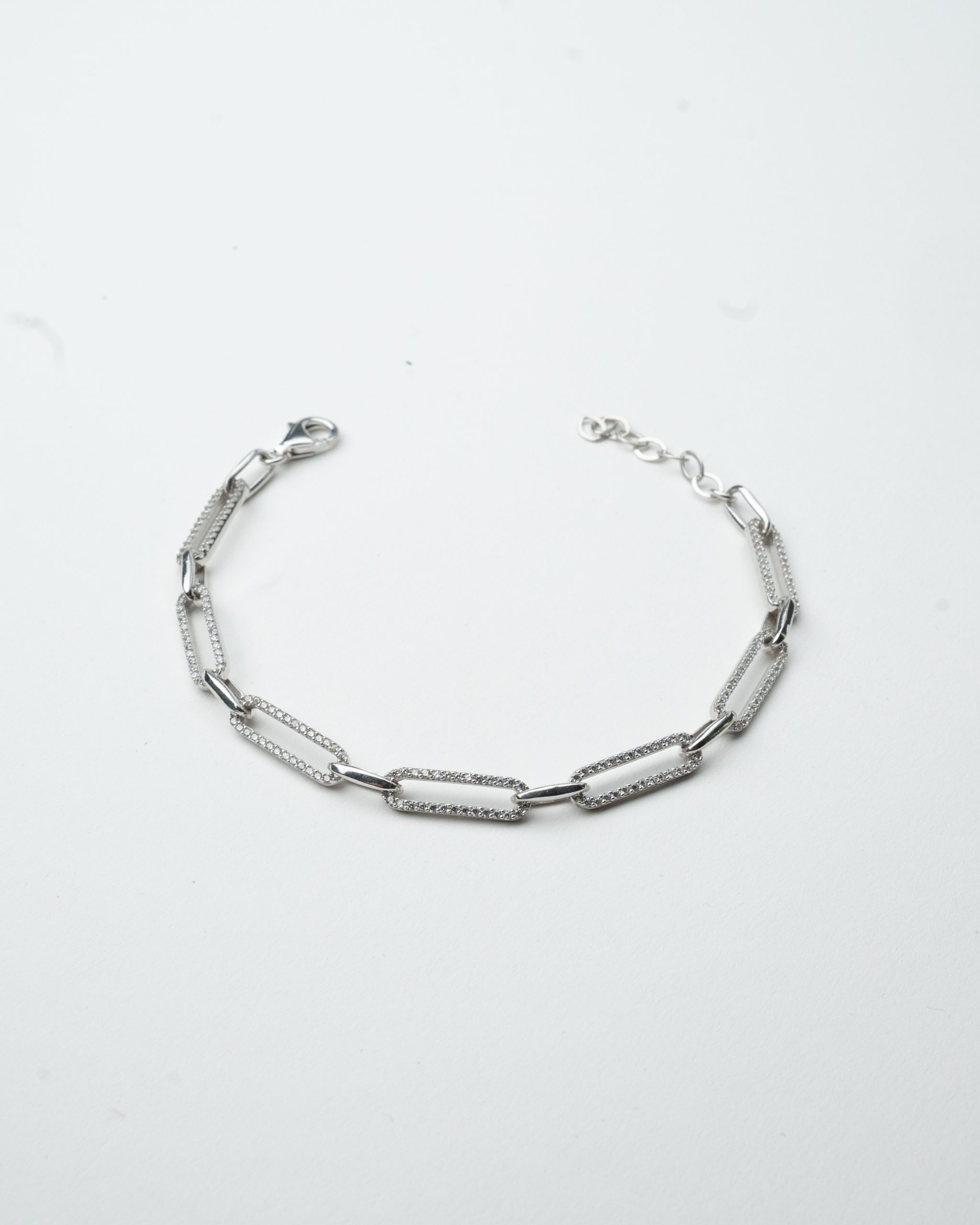 Detta stilfulla armband i äkta silver har en serie av länkar, varsamt inlagda med Kubisk zirkonia för att skapa ett subtilt glitter. En elegant och mångsidig accessoar för den som uppskattar diskret lyx.